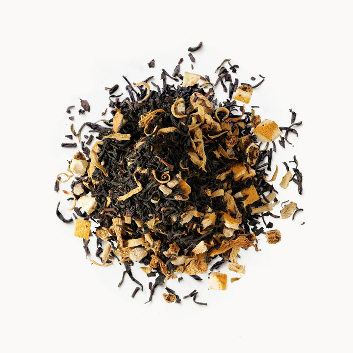 Czarna herbata jest bogata w antyoksydanty, wspiera metabolizm i naturalną odporność. Imbir działa rozgrzewająco, przeciwzapalnie i wspomaga trawienie.