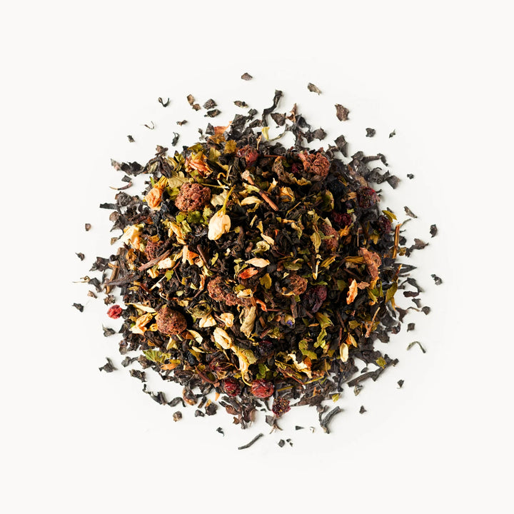 Pu-erh jest bogaty w antyoksydanty, wspiera metabolizm, trawienie i oczyszczanie organizmu. Owoce leśne dostarczają witamin, działają orzeźwiająco i poprawiają nastrój.