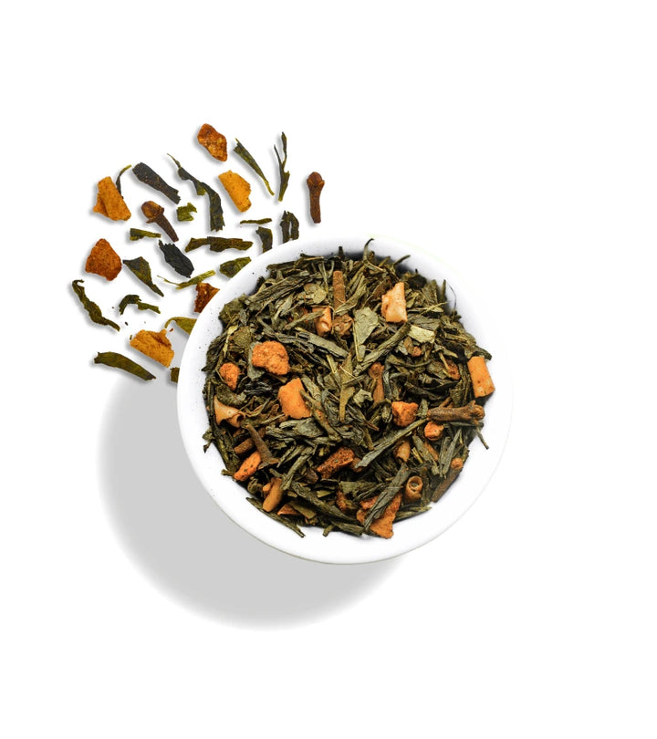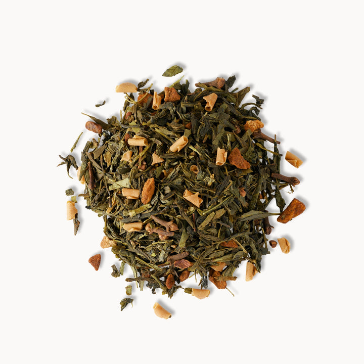 Zielona herbata Sencha z gruszką i karmelowymi nutami, subtelnie korzenna dzięki goździkom i cynamonowi.