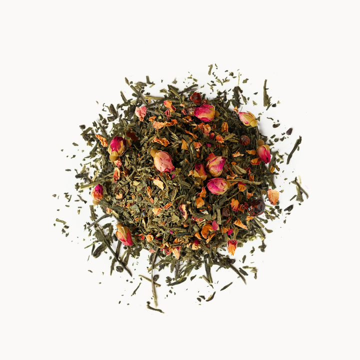 Sencha jest bogata w antyoksydanty, wspiera metabolizm i naturalną odporność. Róża działa relaksująco, poprawia nastrój i wspiera kobiecą równowagę.