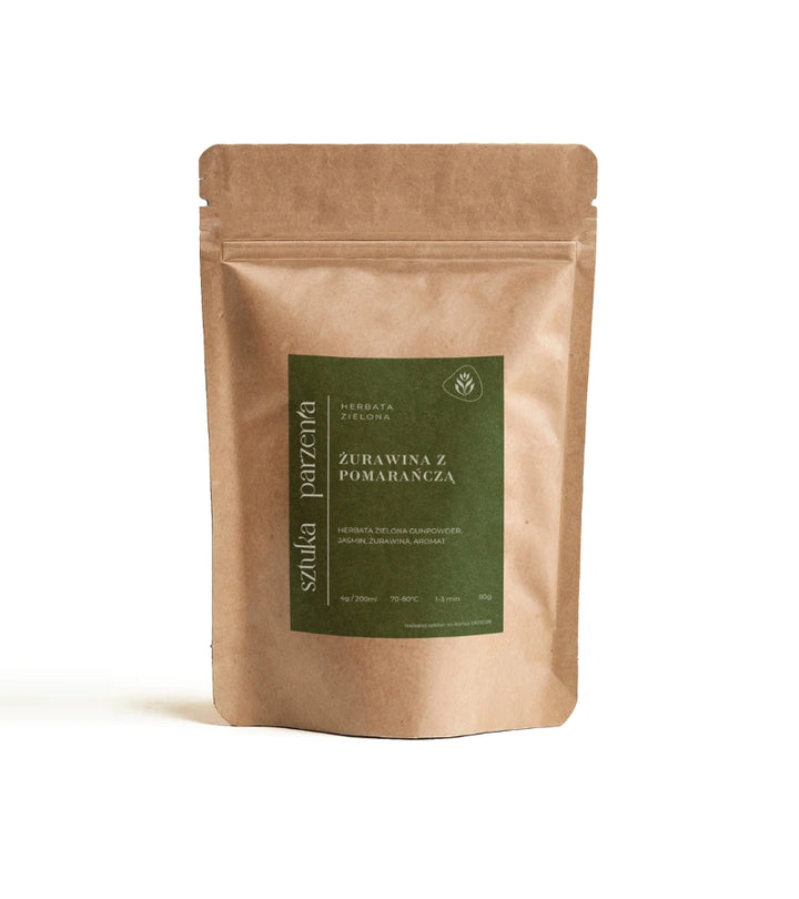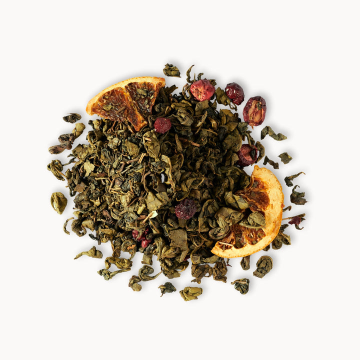 Zielona herbata Gunpowder z jaśminem i żurawiną — orzeźwiająca, lekka i wspierająca odporność.