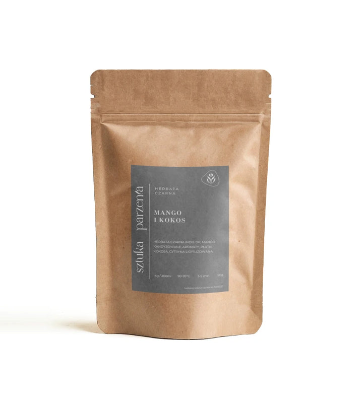 Aromat tej herbaty to prawdziwa uczta dla zmysłów – wyczuwalna jest słodycz dojrzałego mango, przełamana kremową nutą kokosa i delikatną kwaskowością cytrusów. Zapach jest intensywny, owocowy, z subtelną egzotyczną nutą, która zachęca do pierwszego łyku.